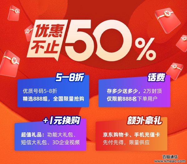 1、优质400号码5-8折、精选888组,全国限量抢购;